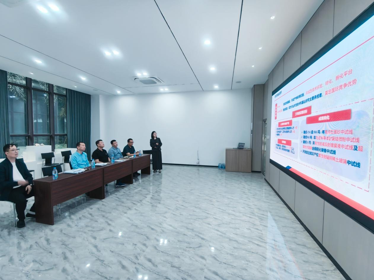 硅基研究院相关负责人详细汇报了2025年取得的主要成果:2025年10月研究院成功揭牌,并依托国家玻璃新材料创新中心平台,聚焦高纯石英砂、先进半导体封装硅微粉、超薄光伏玻璃及柔性耐辐照稀土玻璃等关键方向进行研发布局;同年成功申报三项广西“智果”行动计划重大科技成果转化项目,共获得专项资助资金4424万元,为技术研发与中试转化注入了强劲动力。同时,该院也面临北海本地专业技术人员短缺、中试线建设协调难度较大等挑战。2026年硅基研究院将重点推进中试线建设、高纯砂及硅微粉小试实验、中试线设备采购等各项工作,同步加强人才引进与培养,力争实现年底高纯石英砂中试线达到可调试状态。