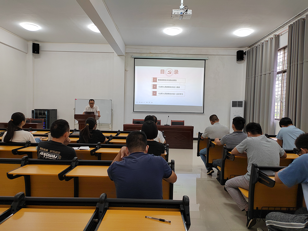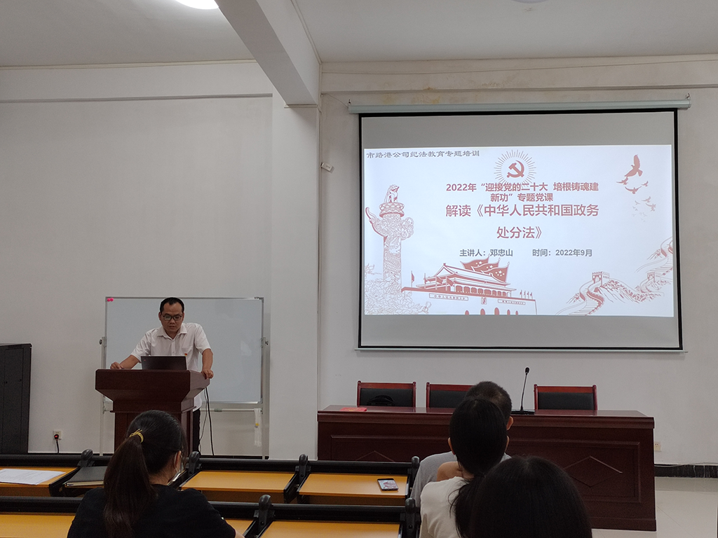 9月8日,点点平台公司第三党支部在污水公司多功能室开展2022年“迎接党的二十大 培根铸魂建新功”专题党课活动,由点点平台公司第三党支部书记邓忠山主讲题为《解读<中华人民共和国公职人员政务处分法>》的专题党课,污水公司全体员工参加学习。