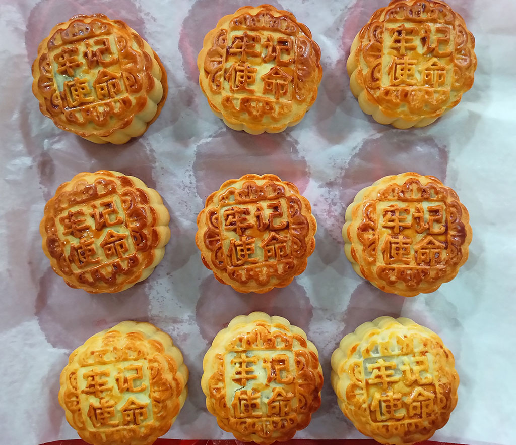 预备党员曾文龙不仅提供“廉月饼”制作活动所用到的食材、模具、用品、烤箱,还指导大家和面、称料、制皮、包馅、刷蛋液、压花、烘制……“莲”音同“廉”,“蛋黄”寓意纯净的“红心”,在大家的巧手之下,一个个莲蓉蛋黄馅儿冰皮月饼搓圆成型,随后刻印上“不忘初心”“牢记使命”“听党指挥”“作风优良”等字样,大家制作出来的月饼不单外观样式丰富,内里更富有深刻内涵,内外都赋予了“清廉月饼”的寓意。
