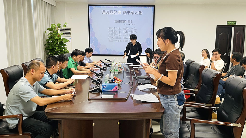 大家精选了《鹊桥仙》《迢迢牵牛星》《关雎》等七夕经典诗词,《与妻书》《这是我给你的最后一封信了》等革命烈士的红色家书。在唯美的古诗词中,重温传统古典文化的独特与魅力,在一封封红色家书中,感受革命先烈崇高的精神境界和理想追求。在这骄阳似火的八月,大家通过诵读的方式,弘扬传统文化,传承红色基因,在书香殿堂里共同庆祝七夕佳节。