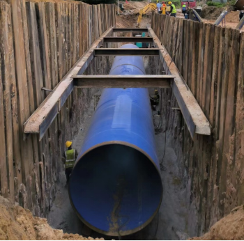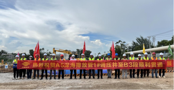 A5深海排放管工程全长约35.9公里(其中1号调压井-B3调压井段长3.5公里),总投资27亿元。自项目开工以来,项目业主点点平台积极贯彻落实市委、市政府工作部署,与辖区政府团结协作,组织参建单位优化施工方案、多点同步施工,按期保质保量完成了A5深海排放管1号调压井-B3调压井临时接驳段通水任务,为铁山港区玖龙纸业项目的投产提供了有力的配套保障。