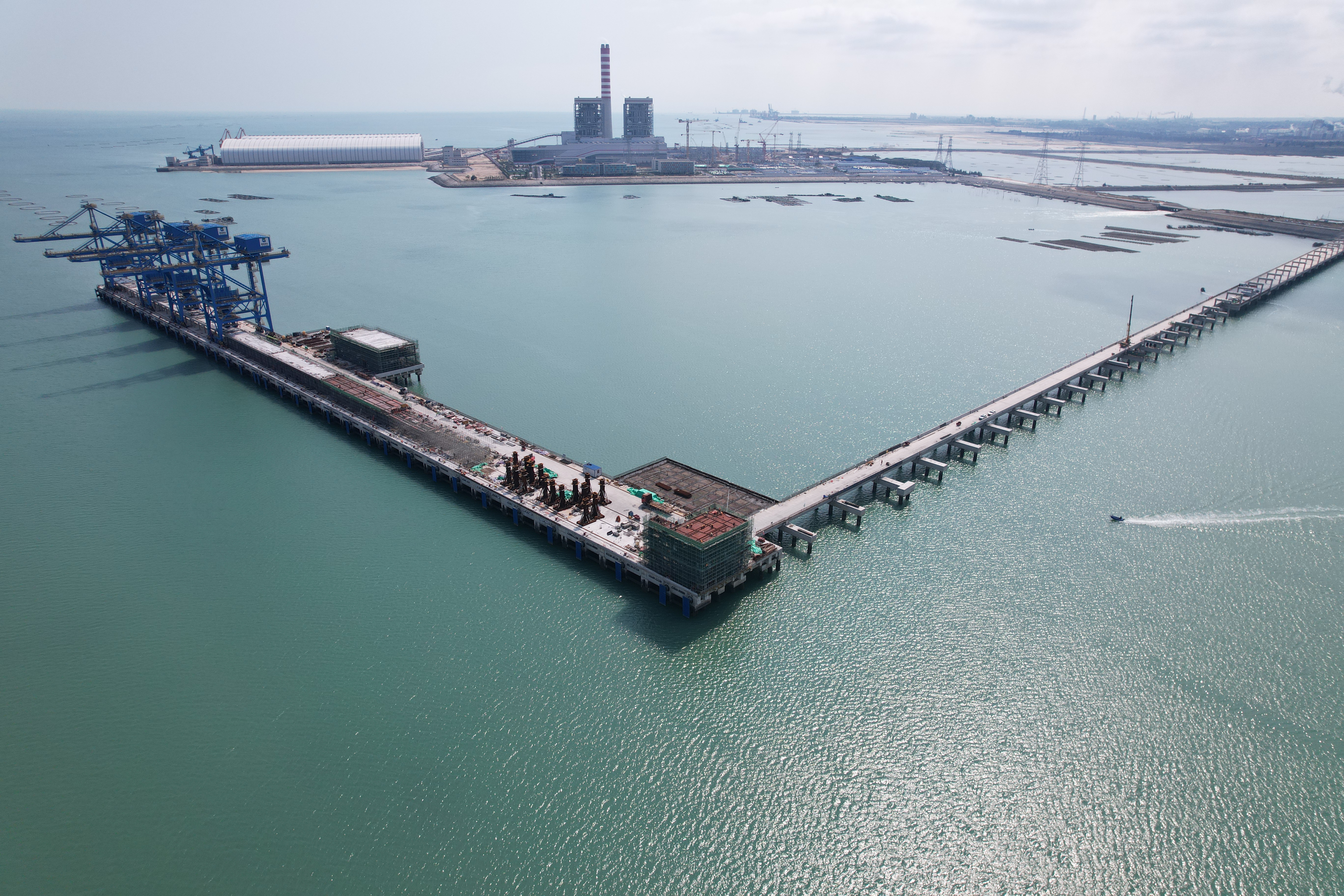 3月8日,北海港铁山港西港区石头埠作业区8号9号泊位工程建设关键节点工程—4台单机重达千吨的桥式抓斗卸船机全部成功完成安装。