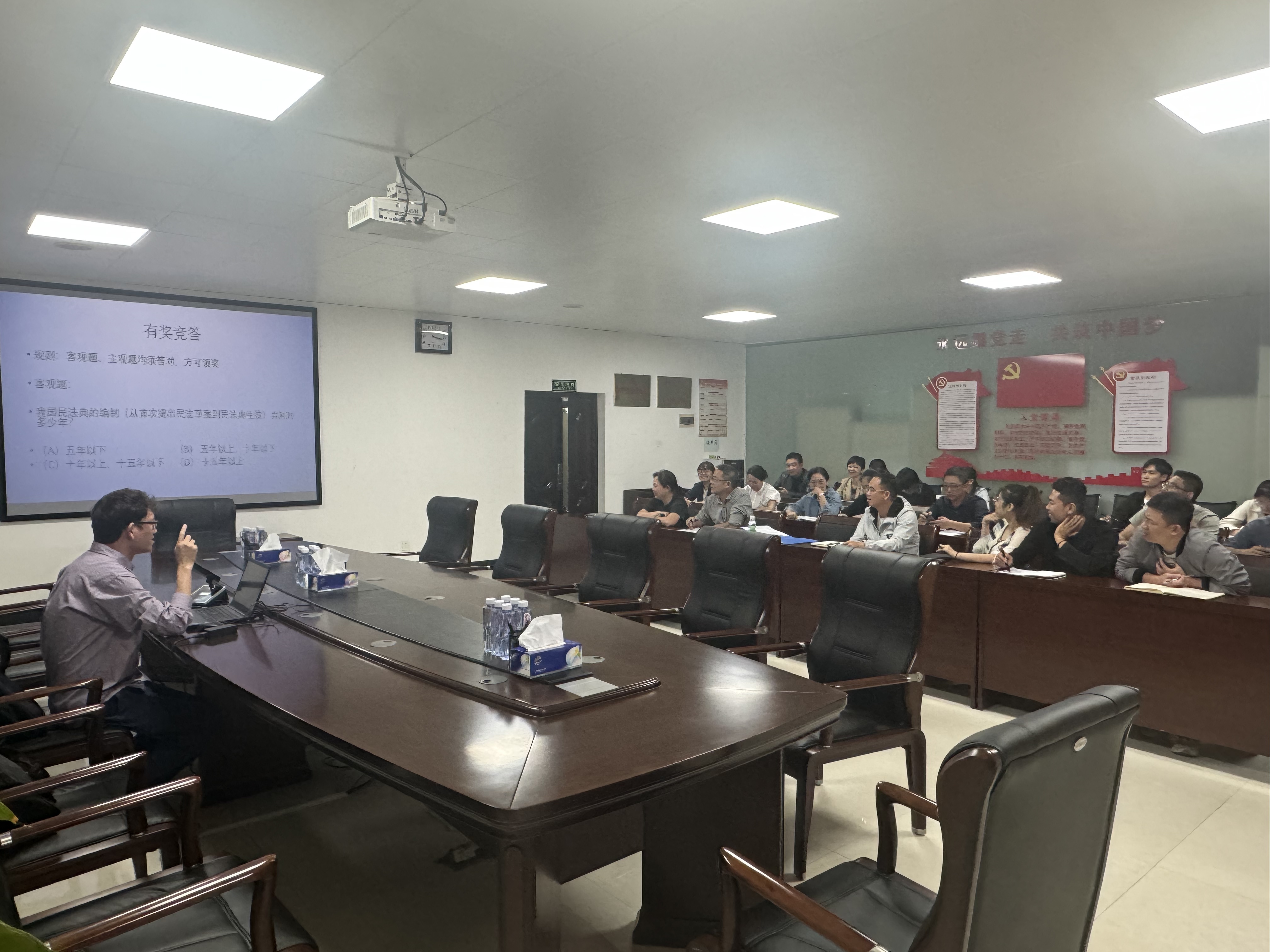 陈强律师首先介绍了诉讼时效的概念和意义,强调了在民事活动中及时行使权利的重要性。他指出,诉讼时效是法律为了维护社会经济秩序稳定而设定的一种制度,旨在督促权利人在合理期限内行使权利。接着,详细讲解了一般诉讼时效期间为三年的规定,并结合实际案例说明了诉讼时效的起算点、中断和中止的情形。讲解过程中,陈强律师尤其针对公司业务可能涉及的诉讼时效问题予以分析,为员工们提供了实用的法律建议。