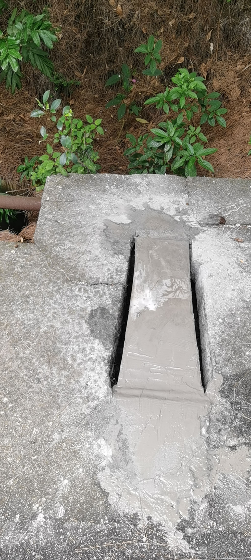 为彻底解决安全隐患,工作人员使用切割机将缺口两端混凝土切除后,凿开顶面部分混凝土形成支座,再根据缺口尺寸预制混凝土板,待混凝土板成型后安装。历时两天,工作人员将排水边沟缺口修缮完毕。