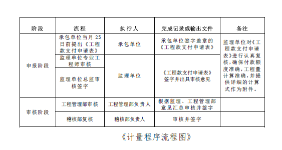 1.监理单位提交审核后的计量资料后,工程管理部、稽核部同时审核,并于3个日历天内出具书面审核意见。