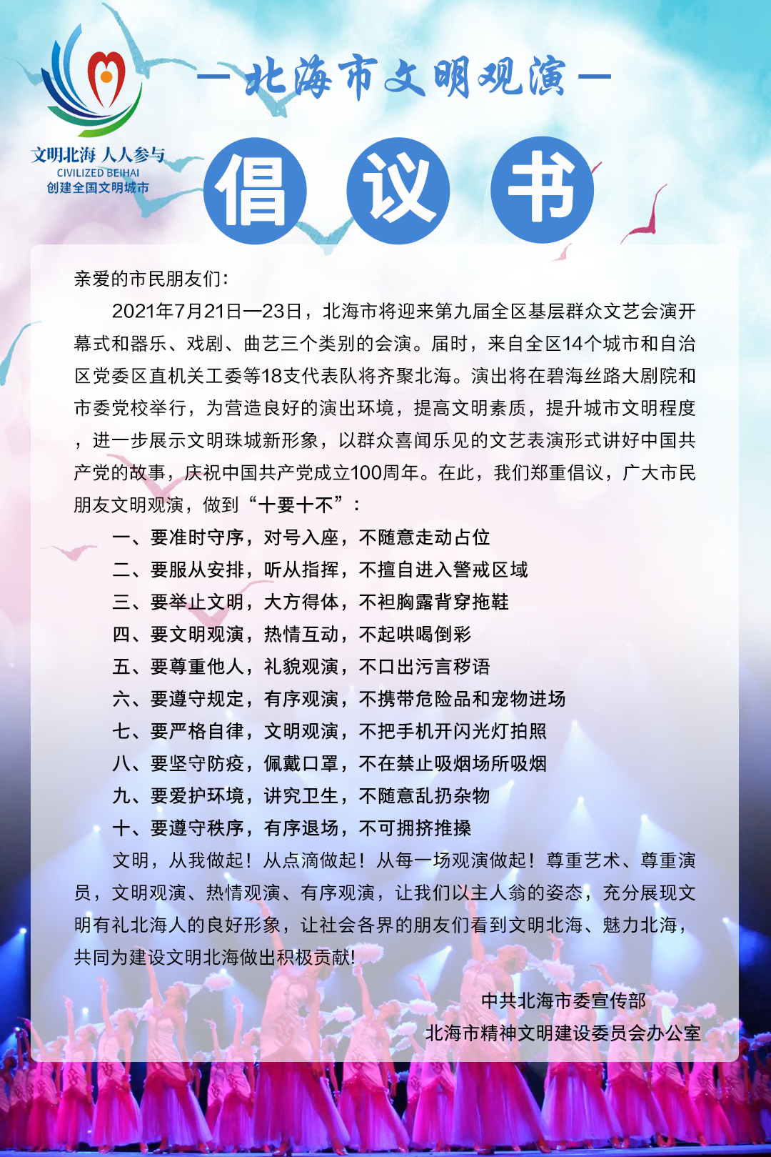 第九届全区基层群众文艺会演文明观演倡议书