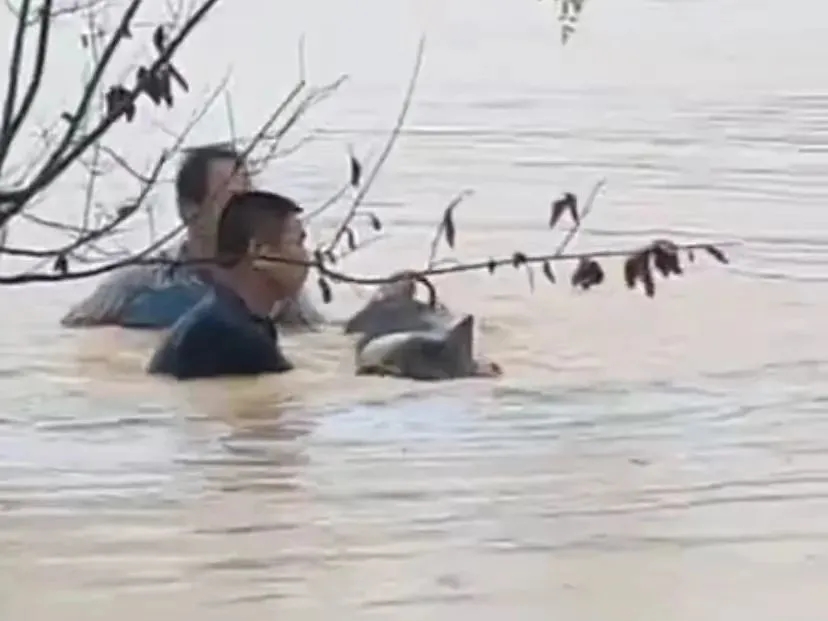 来回折返,不畏艰辛。在4头母猪被安全救援上岸后,李绍山已经筋疲力尽,此时的他仍叮嘱村民在岸边接应,他自己则再次趟进齐腰深的水中,去负责运送小猪,他在水中、岸边来回穿梭,累得气喘吁吁,十分钟后,终于成功把16头小猪安全运送上岸。至此,9头肉猪,4头母猪,16头小猪全部救援成功!