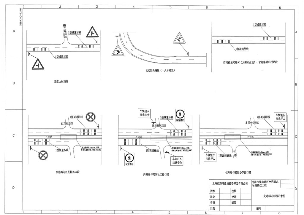 本项目为北海市铁山港区交通标志标线整改工程。主要涉及整改的路段有LNG码头路段(十八号路段)、兴港镇营闸路葛麻山村路口、兴港路红花根路口、兴港路南乐社区路口、营闸路坡尾底村路段、营闸路粟山村路段、七号路与富屋小学路口等。