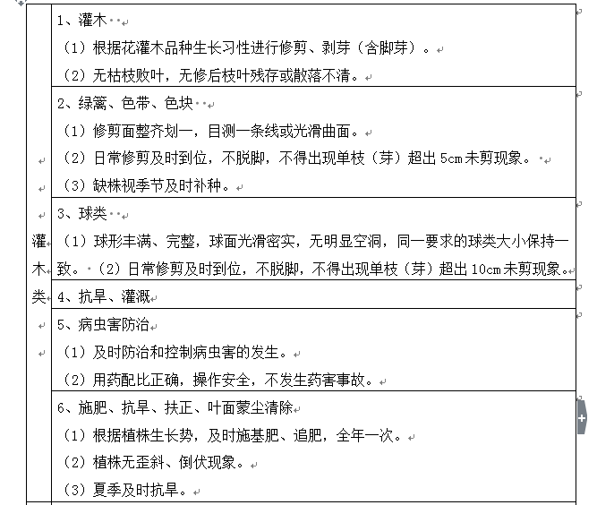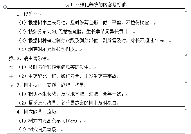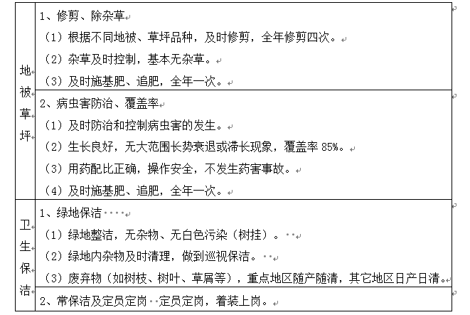 2.绿化养护的内容及标准: