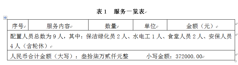 1.本项目计划配置人员总数为9人,其中:食堂2人、安保人员4人(含轮休)、水电工1人、保洁员1人、绿化员1人;