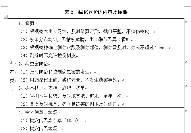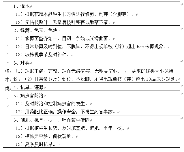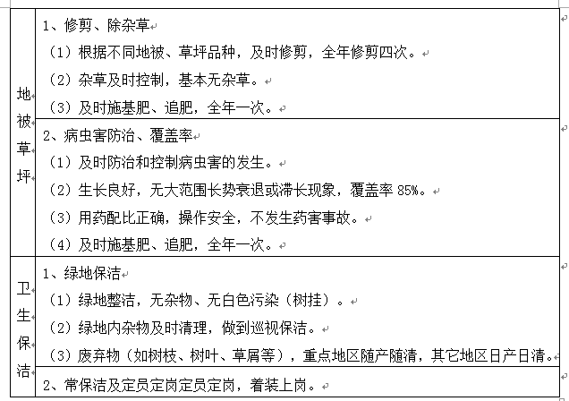 1.绿化养护的目标:达到城市绿地养护二级标准。