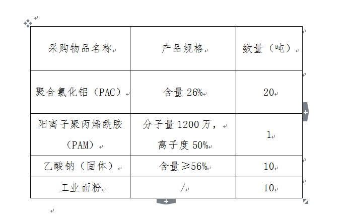 我公司现以询价方式采购污水处理化学药剂。请各有关供应商就以下采购的化学药剂进行书面报价(报价为含税全包价)。